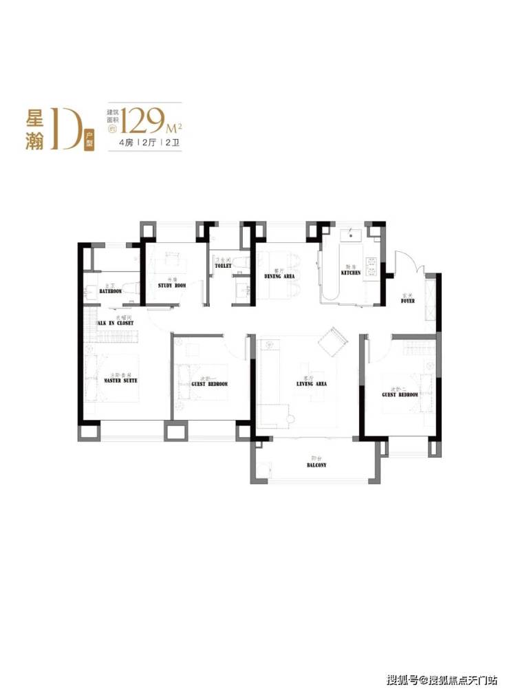 建面约123-129㎡真四房,这个户型的南向面宽和尺度感堪比一般的别墅。