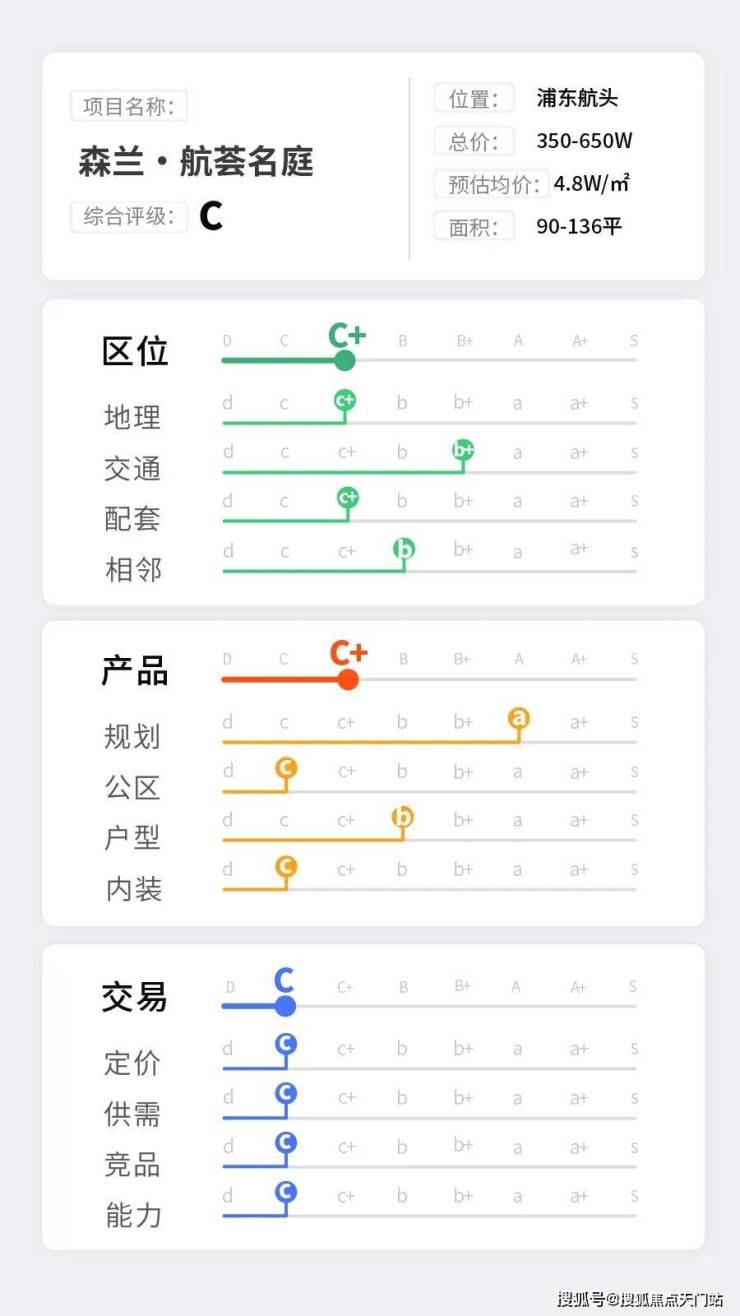 项目总建面约10万㎡,户型面积约90-136㎡,总计953套房源,限价4.8万/㎡,对应总价在350-650万,综合评级给到C。