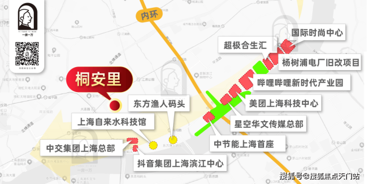 作为整个滨江带的资源汇聚之心,桐安里所在的中央活动区承载着杨浦区最高能级的城市功能域配套: