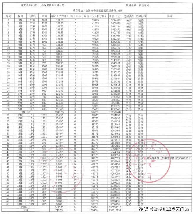 一房一价表发布: