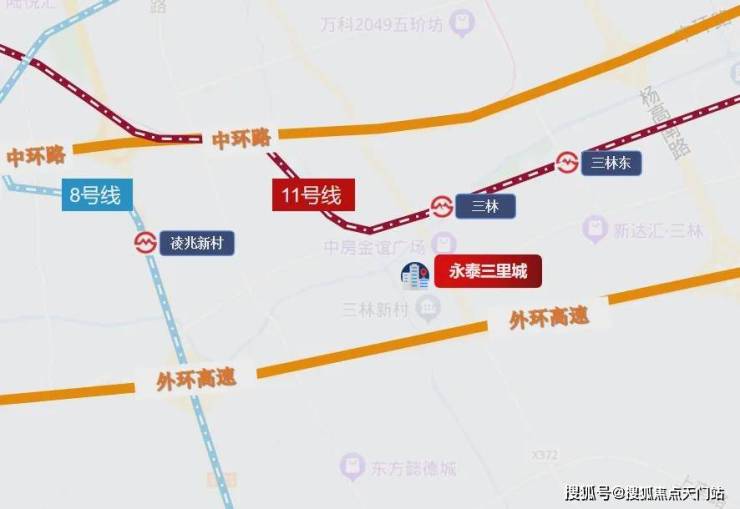 轨交方面:项目距地铁11号线三林站直线距离约500米,临近中环路和外环高速,交通十分之高,几乎可以畅达整个上海市各个交通节点。