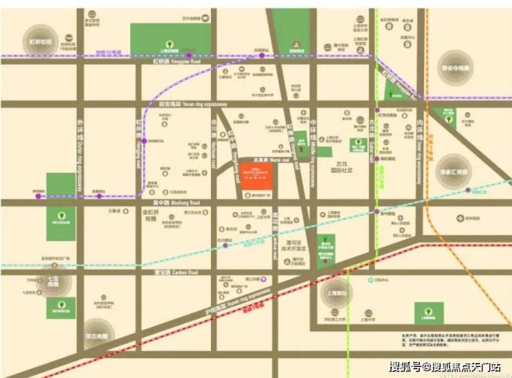 交通配套方面:项目地处长宁、徐汇、闵行三区交汇的金虹桥板块的核心区位,拥有多维立体的交通,延安高架、中环线、外环线环伺。