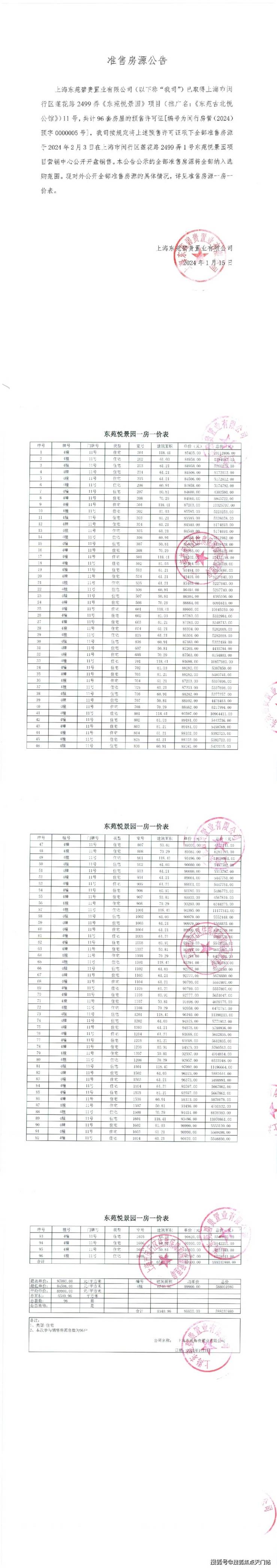古北悦公馆一房一价表▼