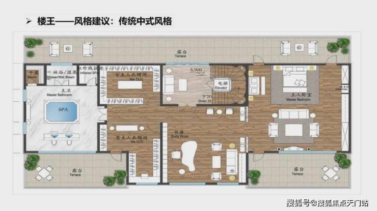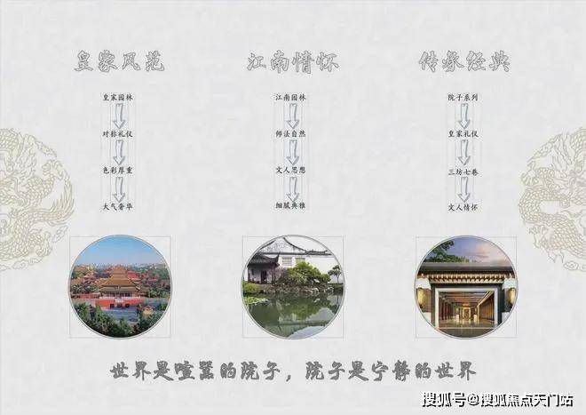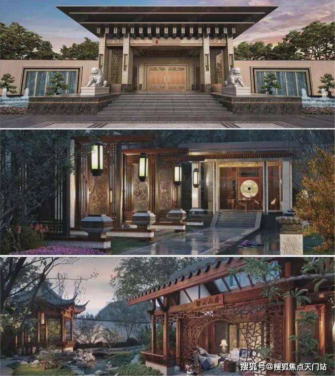 以广亮的铜制大门、汉白玉精雕的抱鼓石、千年流韵的瓦当、对开式柚木大门、千年奇松秘园,同时上城院子更有门前福临之缸的整体风格并结合现代人的生活习惯与审美,高度要求与人的视线、心境、精神相适应