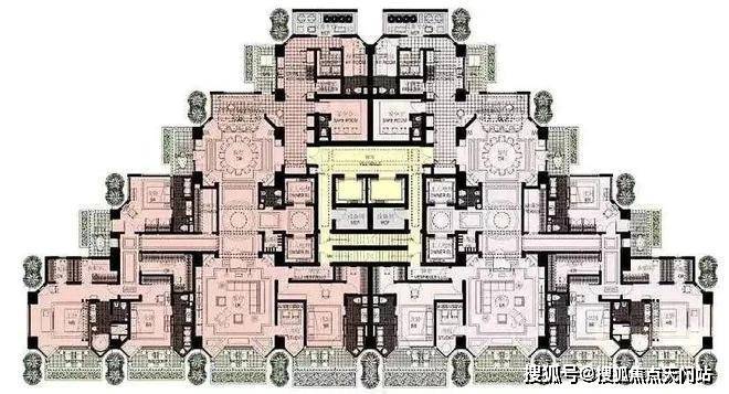 外部设计已经足够令人震撼,内部户型更是壕到无法想象。独特的金字塔设计,仪式感超强。所有住宅单元都尽可能南向,拥有360°采光的同时不浪费一丝一毫的江景。