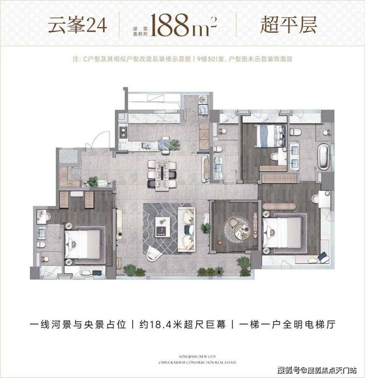 其一,一梯一户奢享阳光电梯厅,兼具尊崇与私密性,归家仪式感从入户前即开启;