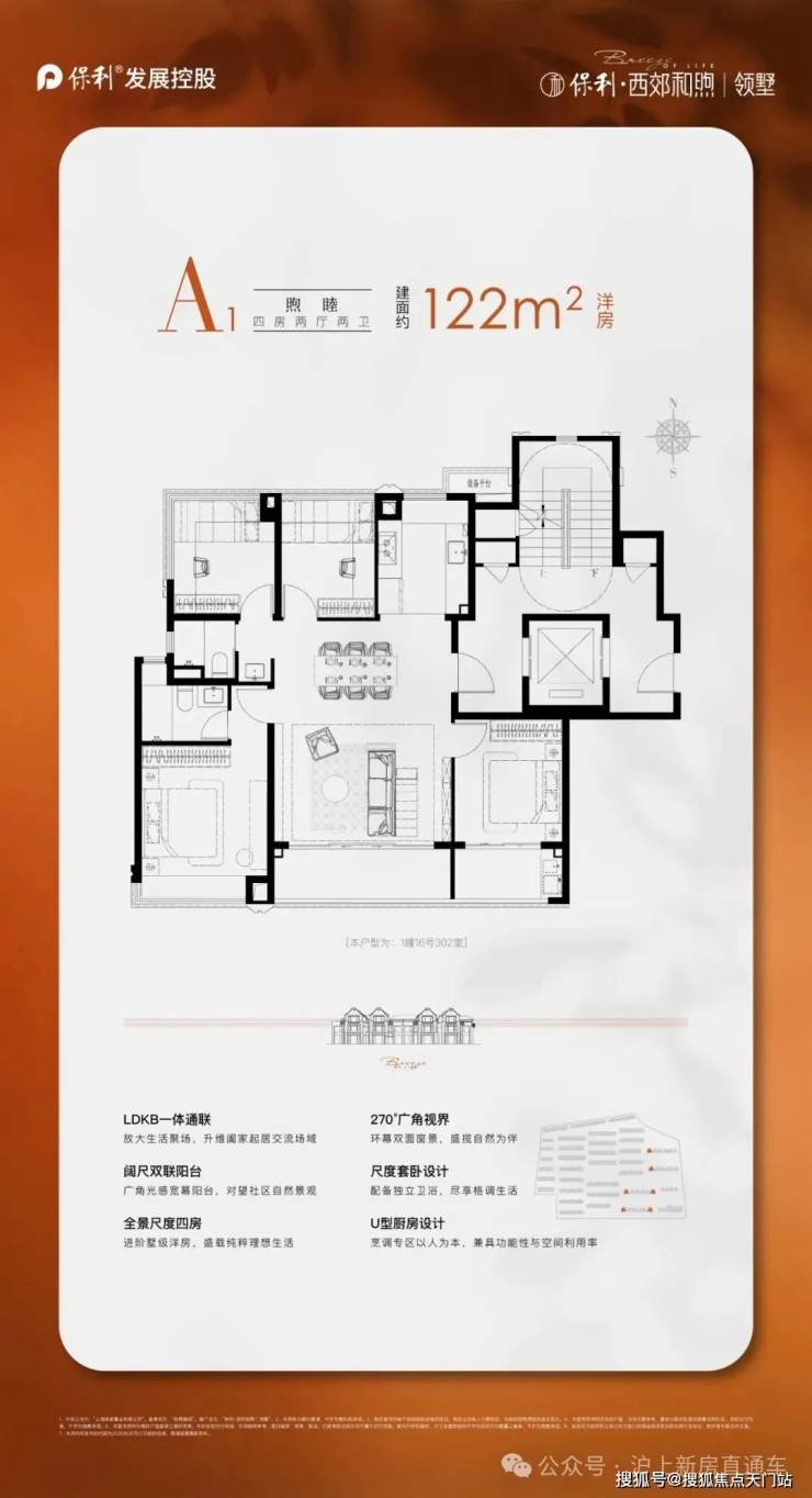 建面约122㎡4房2厅2卫墅境洋房,总价约500W级享3+1飞机户型!