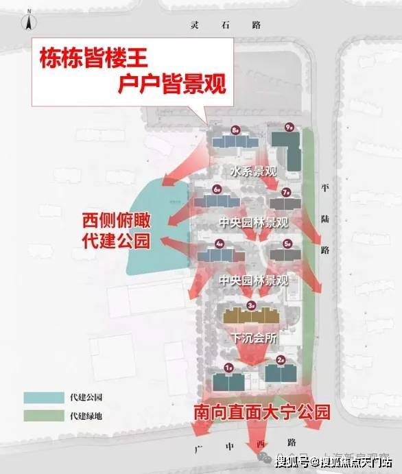 从规划图来看,项目前排可 直面大宁灵石公园无敌景观;而办公部分设置在地块东北侧,也有隔断进行出入口区分,对住宅部分来说几乎没有影响。
