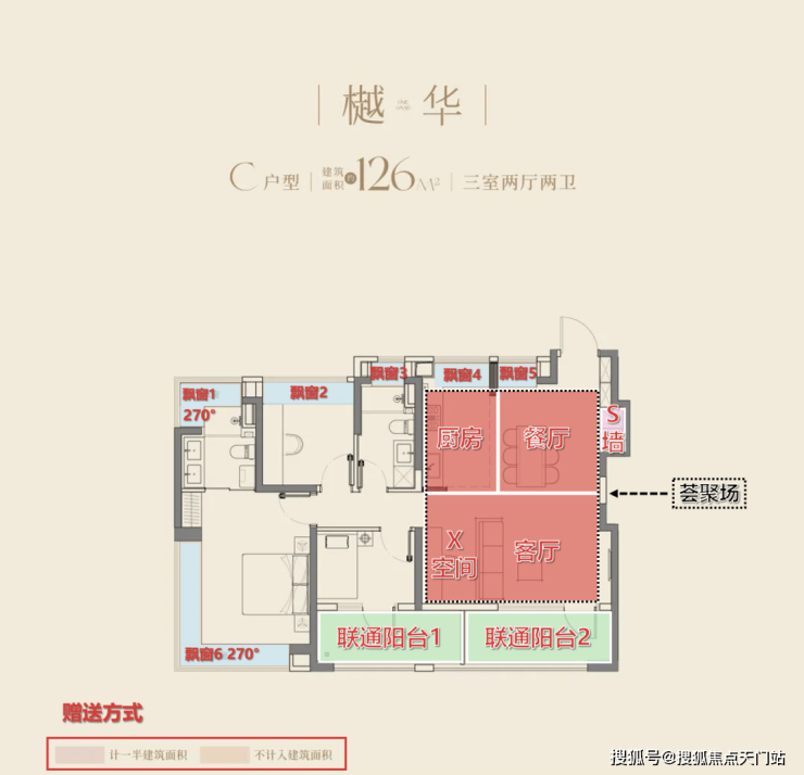 3、高层户型阶梯递进,赠送面积拉低准入门槛。