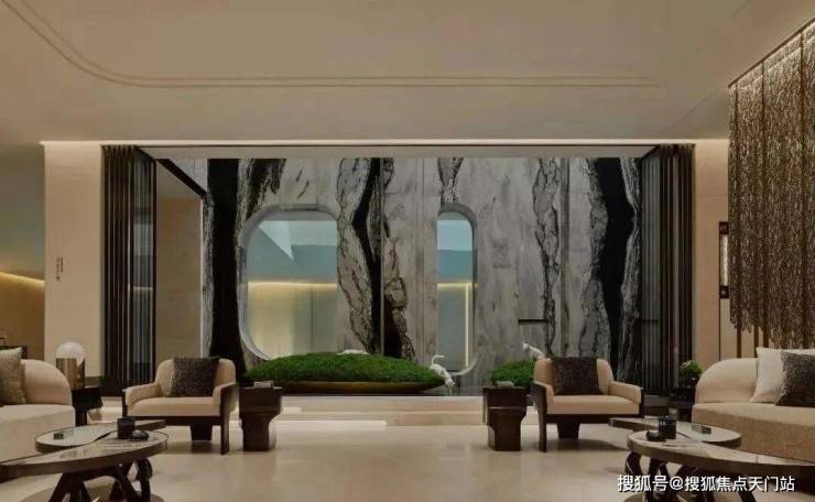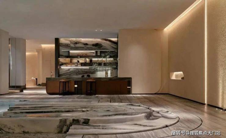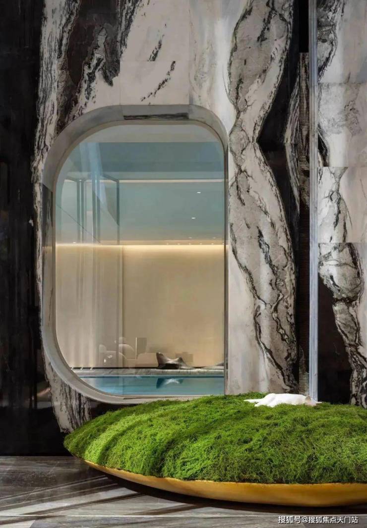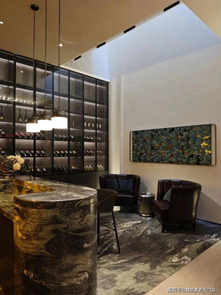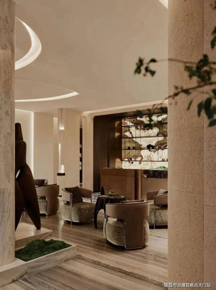 游走于空间之中,颇有几分闲庭信步于园林的洒脱。而那些保留着原始肌理的石材立面,则碰撞出一种兼具自然野趣与现代奢华的独特质感。
