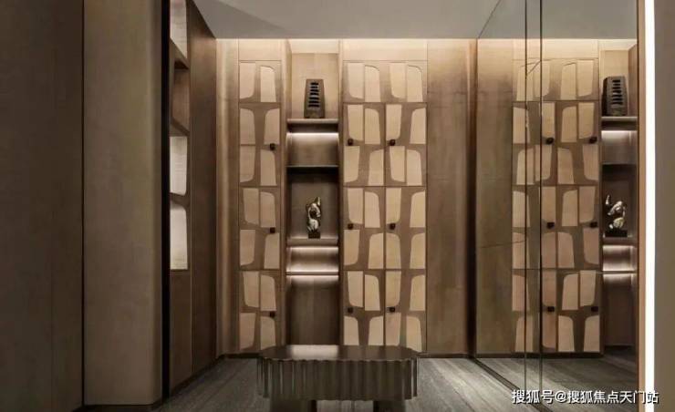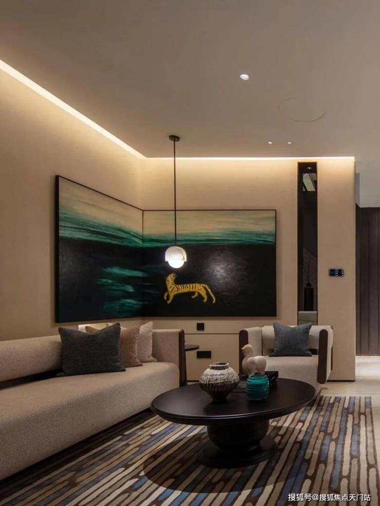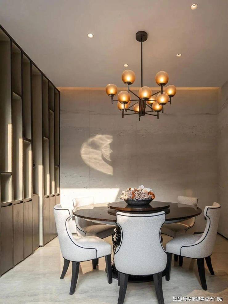 程绍正韬主理的别墅样板间,堪称项目的精髓所在。客厅选用影木与皮革的材质组合,这两种材料本身的奢华质感,通过大气沉稳的配色方案,得到了含蓄而高级的表达。空间整体避免了冗余的装饰堆砌,反而在精神层面显得更为丰盈。艺术格调、奢华品质与宁静氛围在此达到了精妙的平衡与融合。