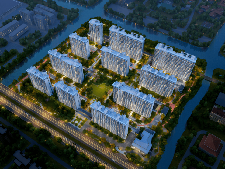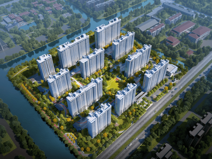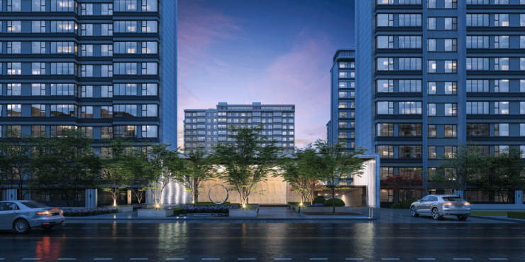 韵律感建筑: 凝萃全球都会高端美学共识,以大幅面钻慕美学立面,构筑起水岸轻奢生活;
