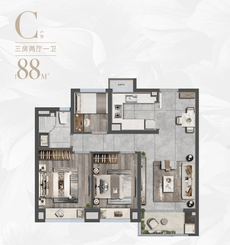 空间感尺度:以约88-133㎡ “全龄全时成长型”户型,点亮城市人居理想,为未来生活预留更多可能。