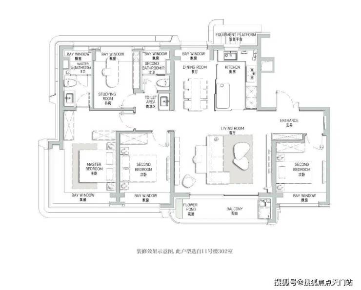 而在建面约134㎡ 3房,配置了主卧套房,更是配置了270°环幕级景观飘窗,正如同全面屏一样,带来IMAX级的宽幕视野!