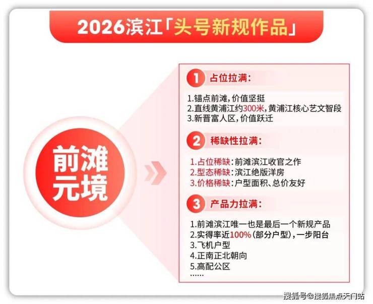前滩滨江压轴来袭!2026 开年爆款,临江约 300 米高实得率洋房,收官藏品不容错过!