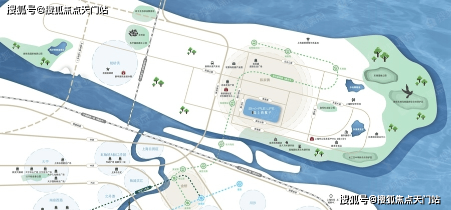 【公交】申崇1线、申崇2线、申崇2线区间链接上海市区,申崇6线、东滩1路、东滩2路、东滩3路等链接崇明各镇。 【轨道线】19号线陈家镇站(建设中)。 【自驾】上海绕城高速-沪陕高速-陈家镇出口-陈海公路-北陈公路-雪雁路。
