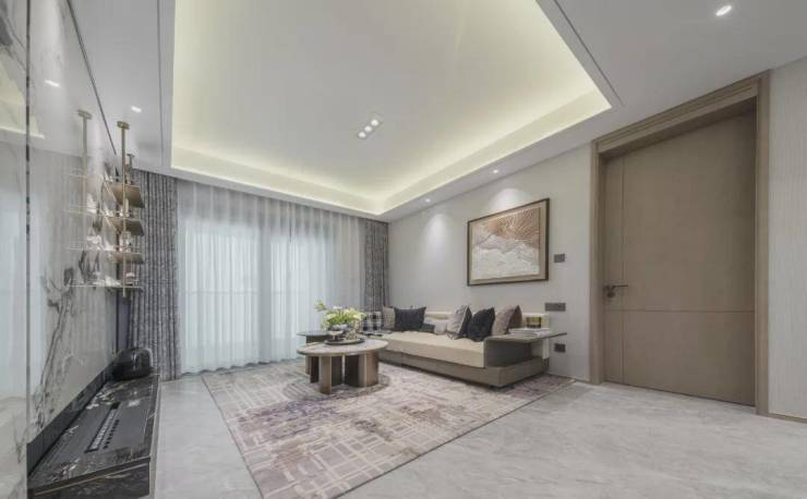 马可波罗大板砖:地面铺设精选马可波罗(或同等品牌)大板砖,以其大气纹理和卓越质感,提升空间的奢华感与立体感。