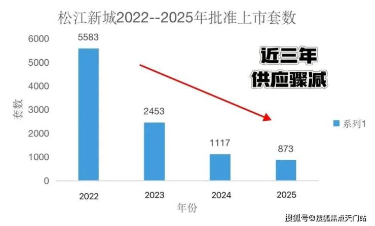 2022年,松江新城的新房供应为5583套新房。随后逐年走低,2023年2453套,2024年1117套,到了今年仅有837套。