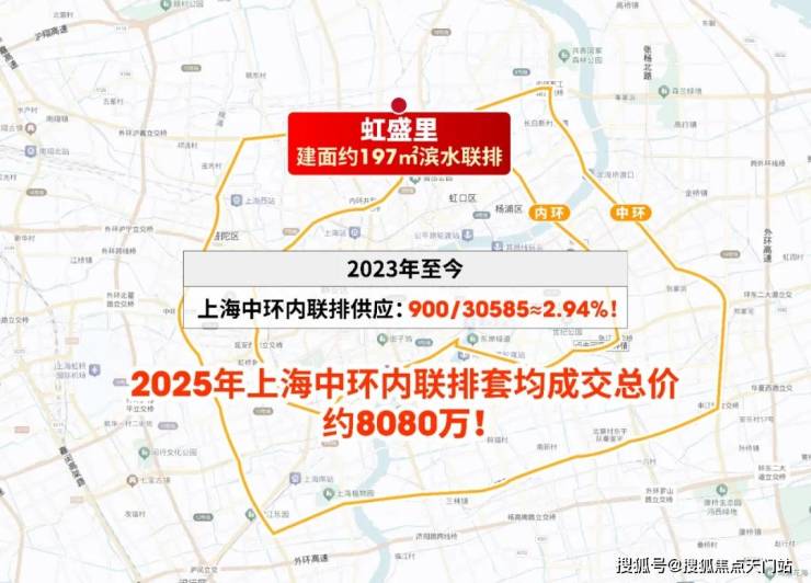 建面约197㎡滨水联排堪称中环稀缺藏品——2023年至今,中环内联排供应占比 不足3% ,套均成交总价高达约 8080万 (包含风貌)。 虹盛里的联排不仅填补了区域市场空白,总价更具亲和力。