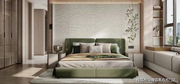 主卧带270°转角飘窗,采光好到像住在玻璃房里 , 睡前看看风景、放点绿植,连衣柜都能省地方。 次卧放下大床+双开门衣柜+俩床头柜 , 空间还富余! 儿童房飘窗改成学习桌,衣柜直接做到顶 , 孩子从幼儿园用到上大学都不用换房。