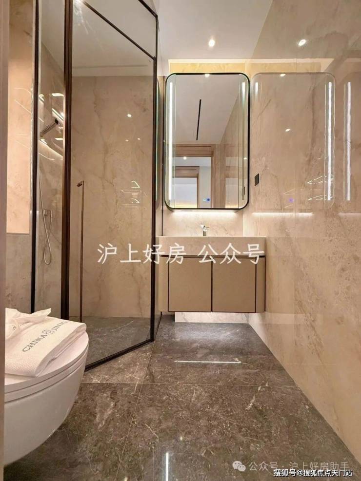另外,卫生间也是配置拉满,劳芬的马桶、当代的龙头、内置美妆冰箱的镜柜、大理石的地面、江南烟雨奢石的墙面一应俱全!