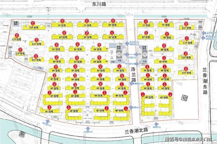 03-04地块: 东至兰香湖东路,南至兰香湖北路,西至浩兰路,北至东川路, 土地用途普通商品房,容积率1.01;由4幢11F高层住宅、14幢4-7F多层住宅以及若干社区配套用房组成,共计规划约342套可售住宅;