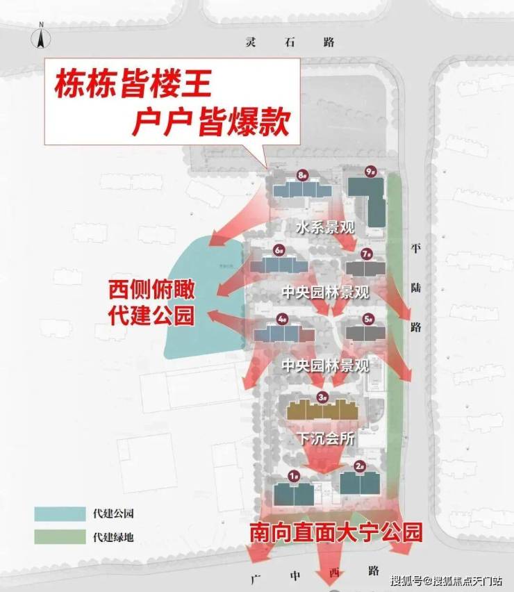 「中建·玖上琅宸」打造了一个约99米宽的超级界面门头,有非常强的豪门大宅即视感。