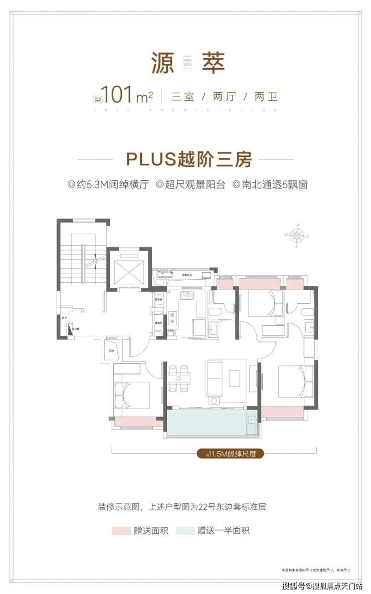 建面约101㎡3房2卫户型,非常标准的飞机户型。