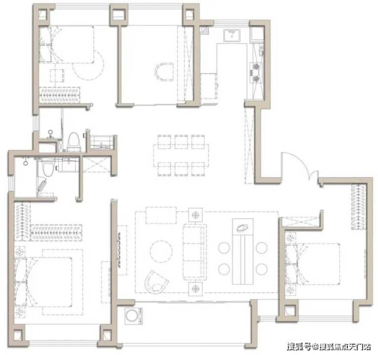 南向大阳台+主卧套房式的设计+无过道浪费,三代同堂居住在这145平的四房空间里,其乐融融。
