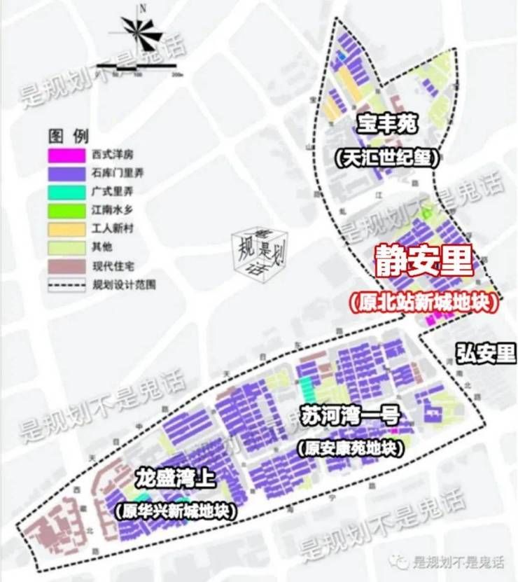 可能大家已经发现了,不论是静安里地块,还是苏河湾一号、龙盛湾上和天汇世纪玺, 苏河湾板块全部的的里弄风貌住宅,全都集中在老北站地区,形成了一片“中央风貌区”。
