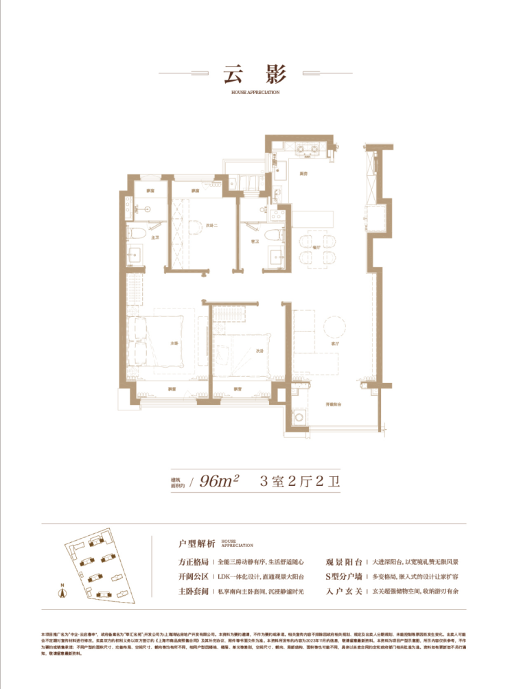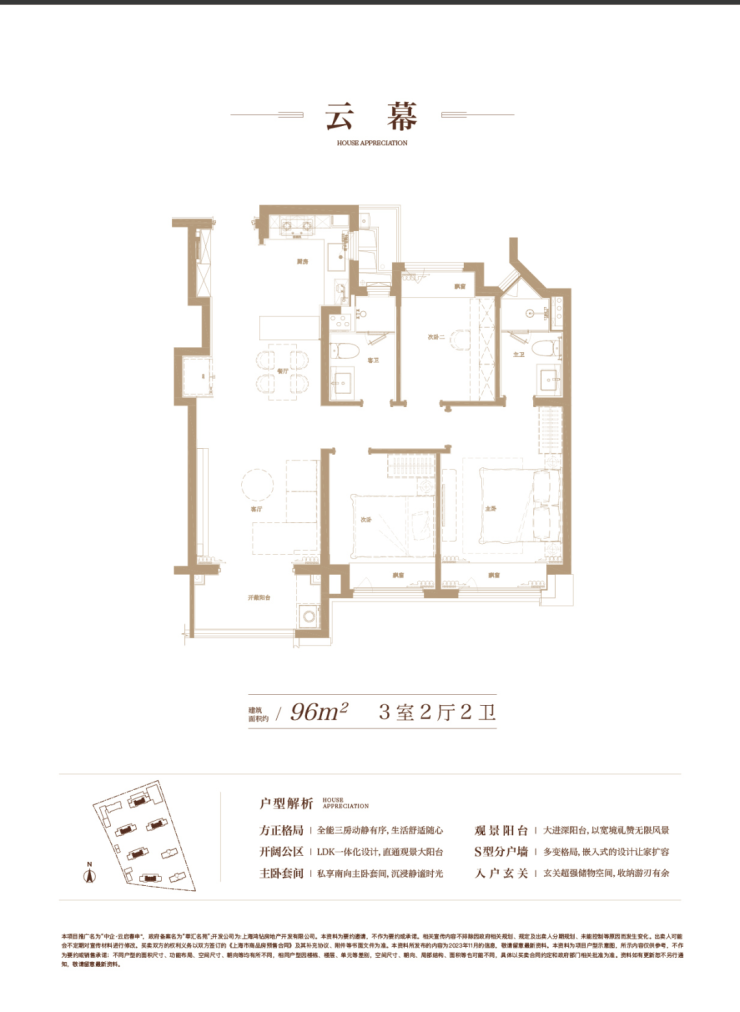 建面约96㎡,充分从居住者的角度考量生活动线、舒适度与生活感。 S型的分户墙,褪去呆板,为家具预留更多的空间; LDK一体化的设计打破空间局限,解锁更多的生活场景,也拉近家人间的距离;主卧套间自在独处,生活的优雅时刻尽显……