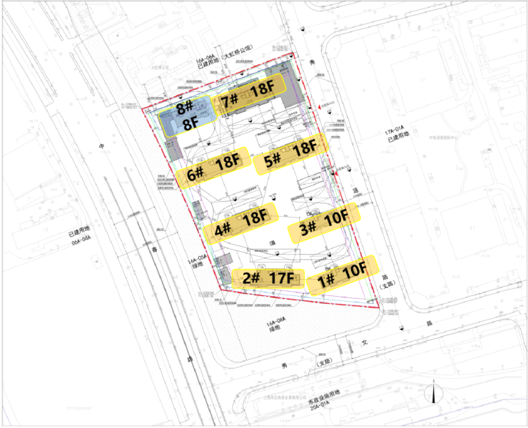 根据项目规划设计方案, 项目拟建7栋10-18F高层住宅、1栋8F保障性住房以及若干配套用房。