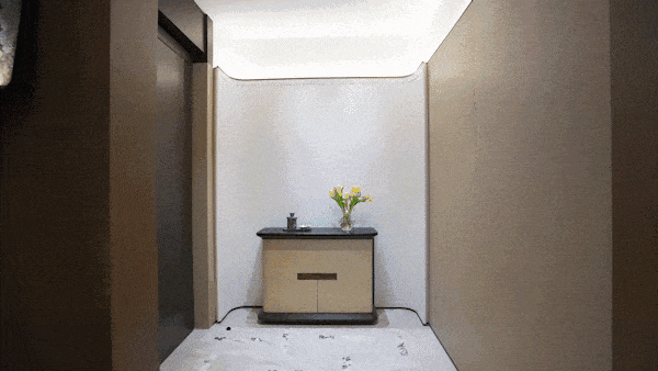 光是入户的瞬间,就能感受到不一样的仪式感:1.8米宽的双扇铸铝入户门厚重又大气,推开后映入眼帘的皇家白玉石玄关,瞬间把外界的喧嚣隔绝在外,让人不自觉放慢脚步,切换到“居家模式”。