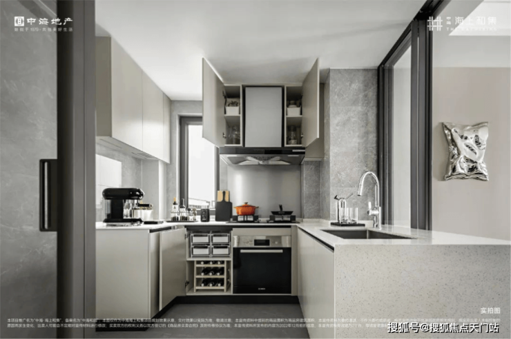 项目特意打造了半开放式的厨房。在做中餐时可以紧密闭合,避免油烟走出,这种厨房形式,不仅可以实现厨房、客厅、餐厅(BLDK)一体化。