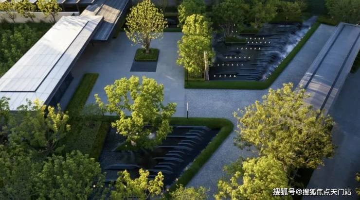 景观设计方面,保利世博天悦采用 引江入园、以水带路的手法,将滨江舒阔的国际生活平移到社区内,打造约 6万㎡景观秘境,媲美全球奢华酒店。采用大面积的留白和现代禅意的表现手法,呈现开阔舒展的质感。