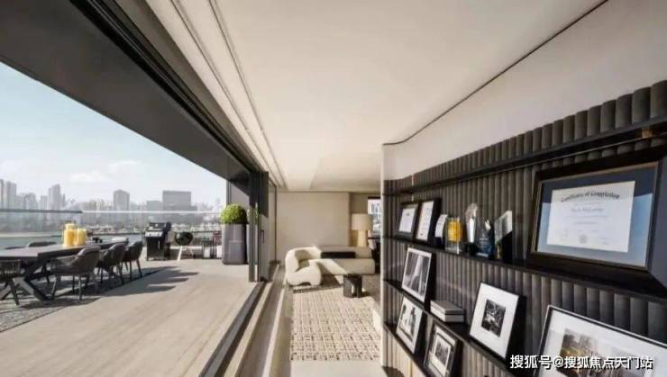 客厅西侧的景观阳台、双豪华套房南侧的生活阳台(2个)、北侧瞰江的空中花园露台和书房阳台,在OPUS ONE 500,保利将江景、花园、星空和社交,统统装进生活半径