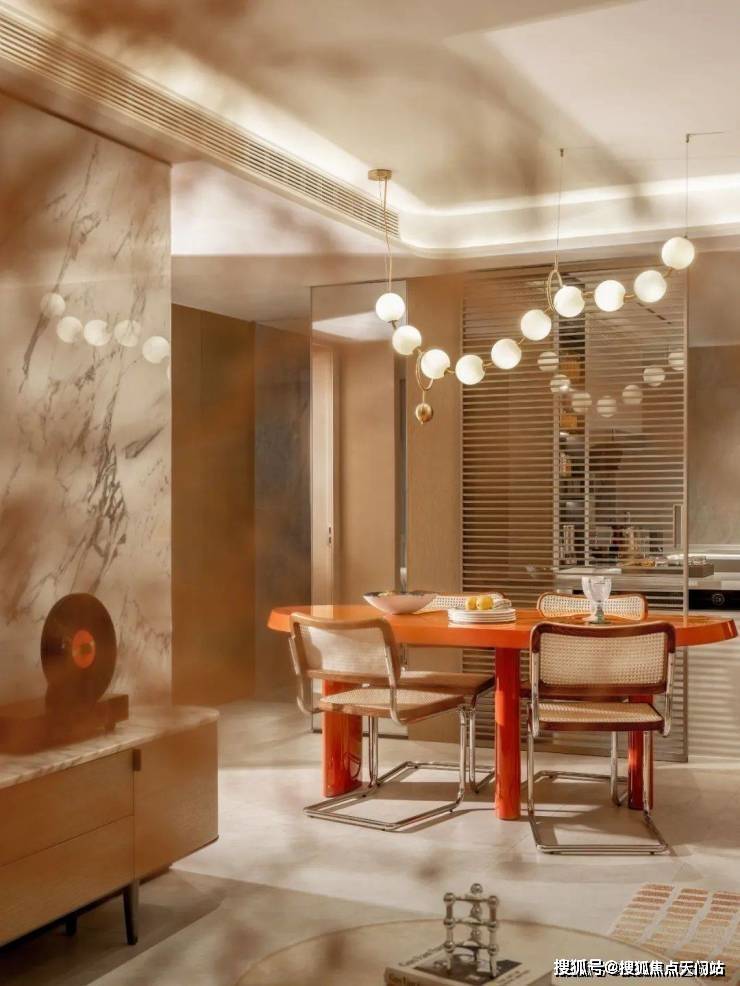 但在时代之城, 约5米的餐厅面宽 ,可以支持未来放下一个容纳多人的小圆桌,也不显拥挤,更好的承载一家人享受天伦。