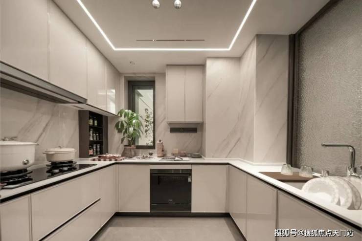 除了户型尺度,招商序的展示空间用料也是在700万这个量级难逢敌手,整个展示空间,除了卧室的拼花地板,其他区域的地面与墙面几乎全是岩板与奢石。连卫生间墙面都做到了岩板通铺....这种用料一般只有千万级的豪宅才能看到,114的客厅背景墙也采用了天然大理石搭配岩板交付,岩板因工艺复杂、性能优异,多用于高端场景,招商序厨房、 卫生间墙面地面,客餐厅地面连通阳台,全部通铺岩板,可见硬装投入度之高。