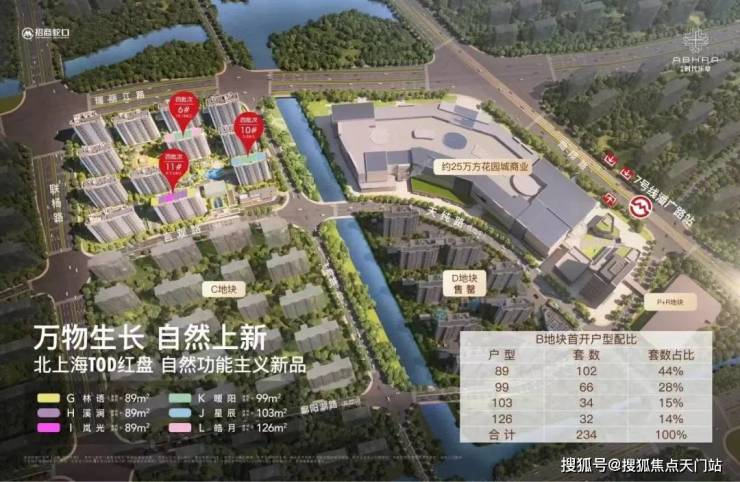项目整体由三幅地块组成:2幅普通商品房+1幅商业用地。整个地块中商业占比53%,约17.48万㎡,住宅占比47%,约15.49万㎡, 本次全新升级花园城商业,为招商蛇口在上海打造的第四座花园城,将延续商业X+的模式。