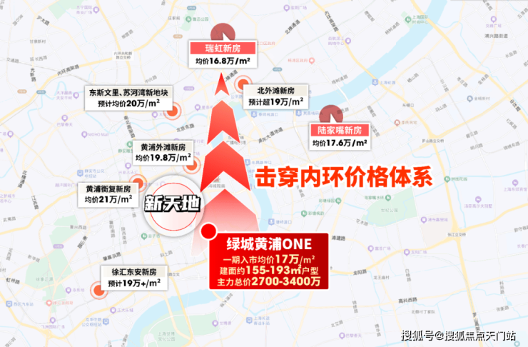 虹口在售新房单价已达16.8万/㎡,绿城地王预期更是19万+/㎡;