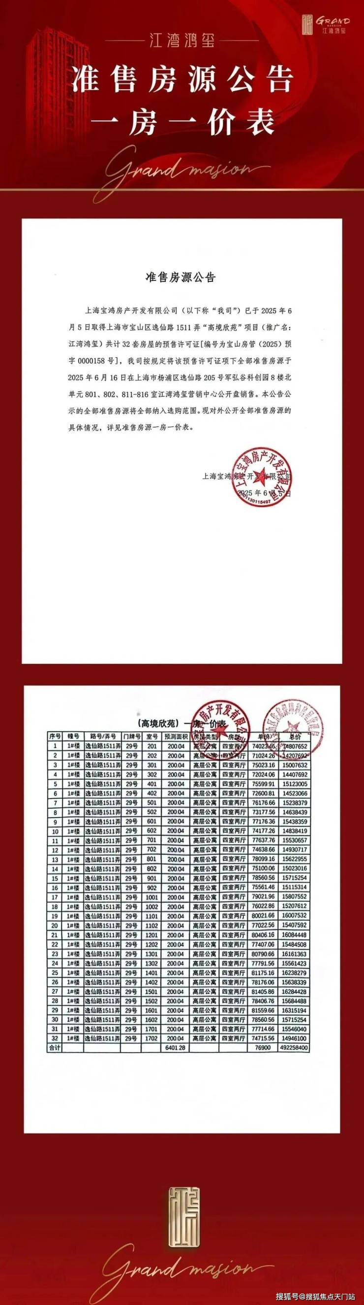 3号线殷高西路地铁口「江湾鸿玺」建面约200㎡大平层,均价7.69万/㎡!!