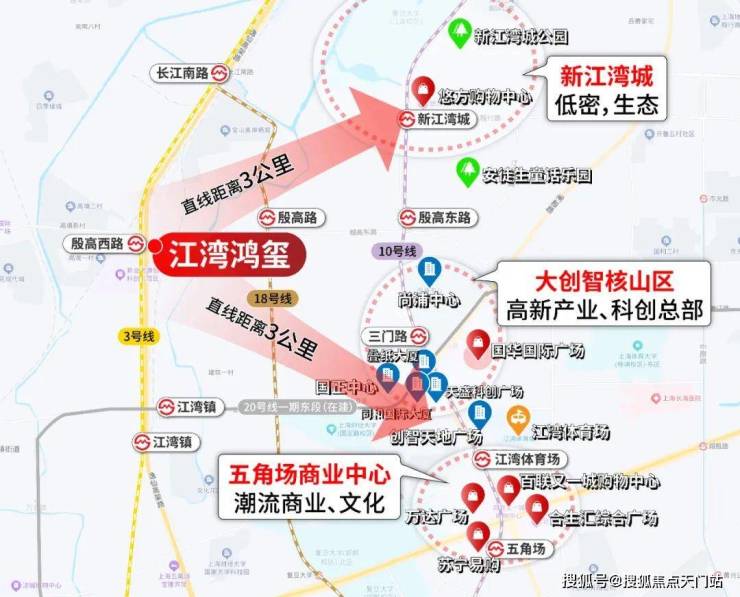 生活配套非常成熟,新业坊·源创就在西侧,吃喝玩乐都能满足,潮流、精致元素也为板块注入更多活力。殷高西路上还有永辉、长江国际、景瑞生活广场等商业。如果要大商圈,项目自驾到五角场商圈、宝山万达、悠方购物中心、大宁商圈、虹口龙之梦也十分便捷。