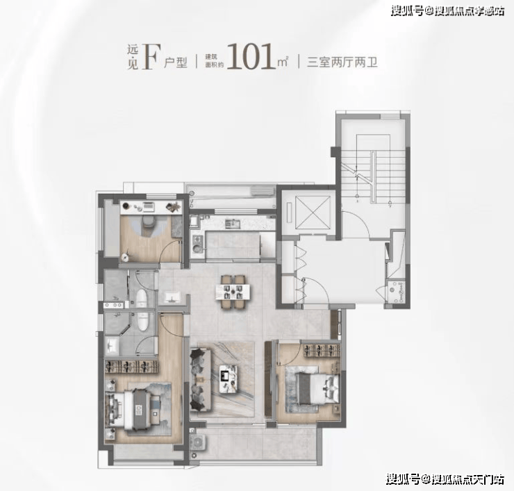 建面约101㎡的F和G户型都是市面上备受认可的飞机经典款户型。