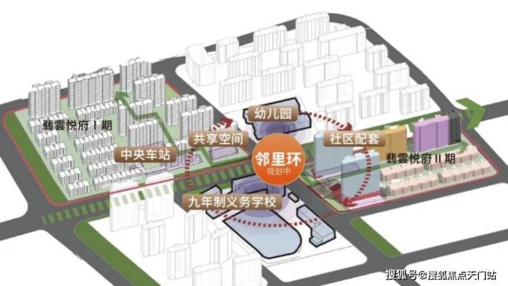 二期与一期对角互动, 拥有幼儿园、共享空间、社区配套、九年制义务学校等配套空间,将这些“生活必需品”浓缩到5mins邻里环中,距离够近,才称得上便利。
