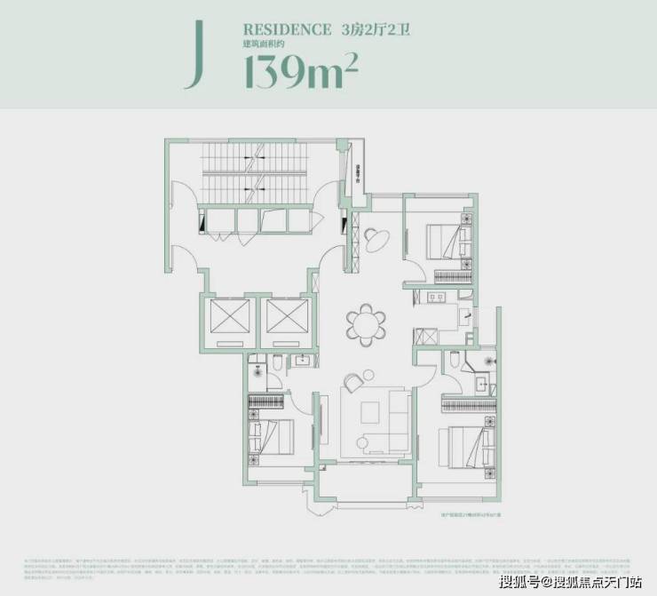建面约129㎡4房:四叶草布局,核心滨江完美4房