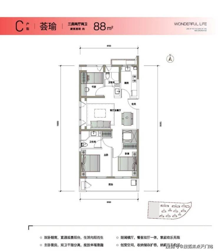 约89-120㎡全能精致户型,毛坯&精装的双重选择,3/4房2厅2卫的户型设计,匹配成长型家庭,聚合沪上品质菁英青年。