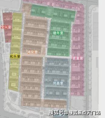 弘安里这块地原由8个街坊组成,其中东寿坊和永安里因后期加建改建较大,体量也很小,为了园区整体考虑,不再保留, 延续了剩余6个组团:德年里、和乐里、宝兴里、更富里和鸿安里。