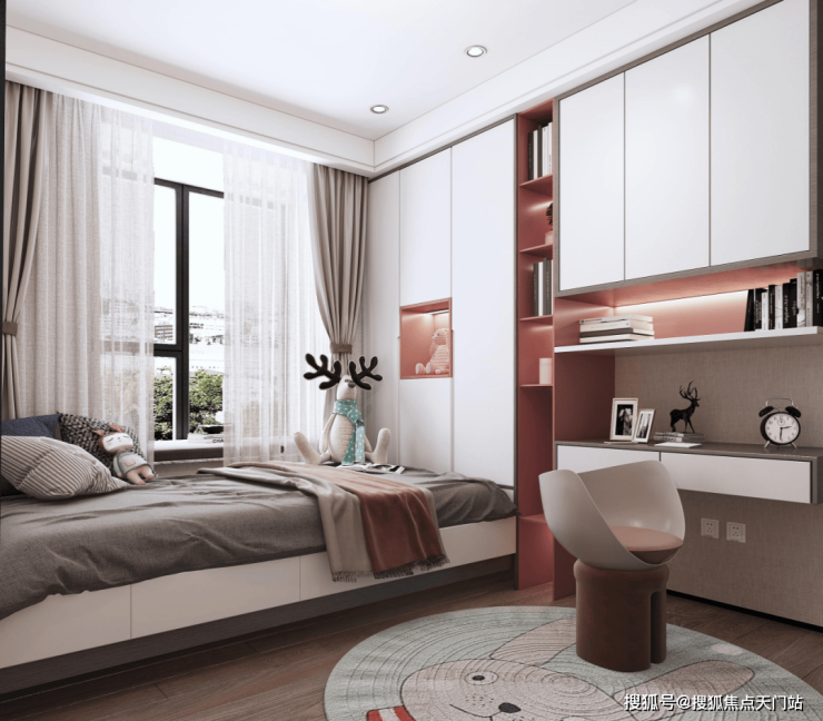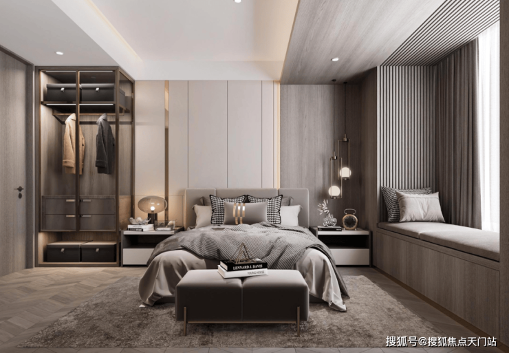 双套房设计,主卧带卫生间+衣帽间 ,次卧带衣帽间+飘窗,让两代家庭都能拥有自己的私密空间。