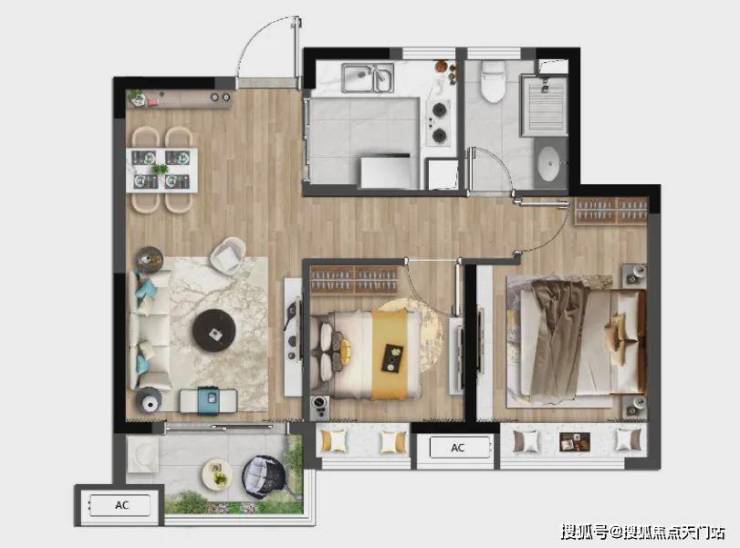 建面约74㎡两室两厅一卫