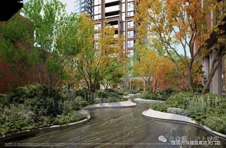 亿元级印象派园林:邀请国际景观大师Pok Kobkongsanti 操刀,突破市区项目常见的「兵列树阵式」布局,通过建筑楼体的精密偏转,形成罕见的围合式社区形态。